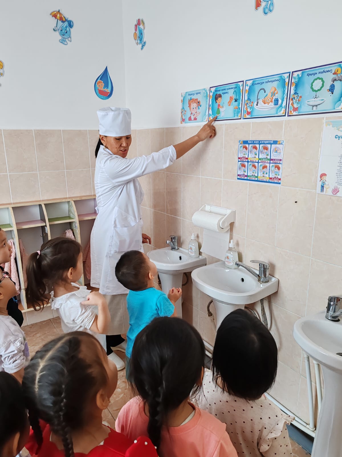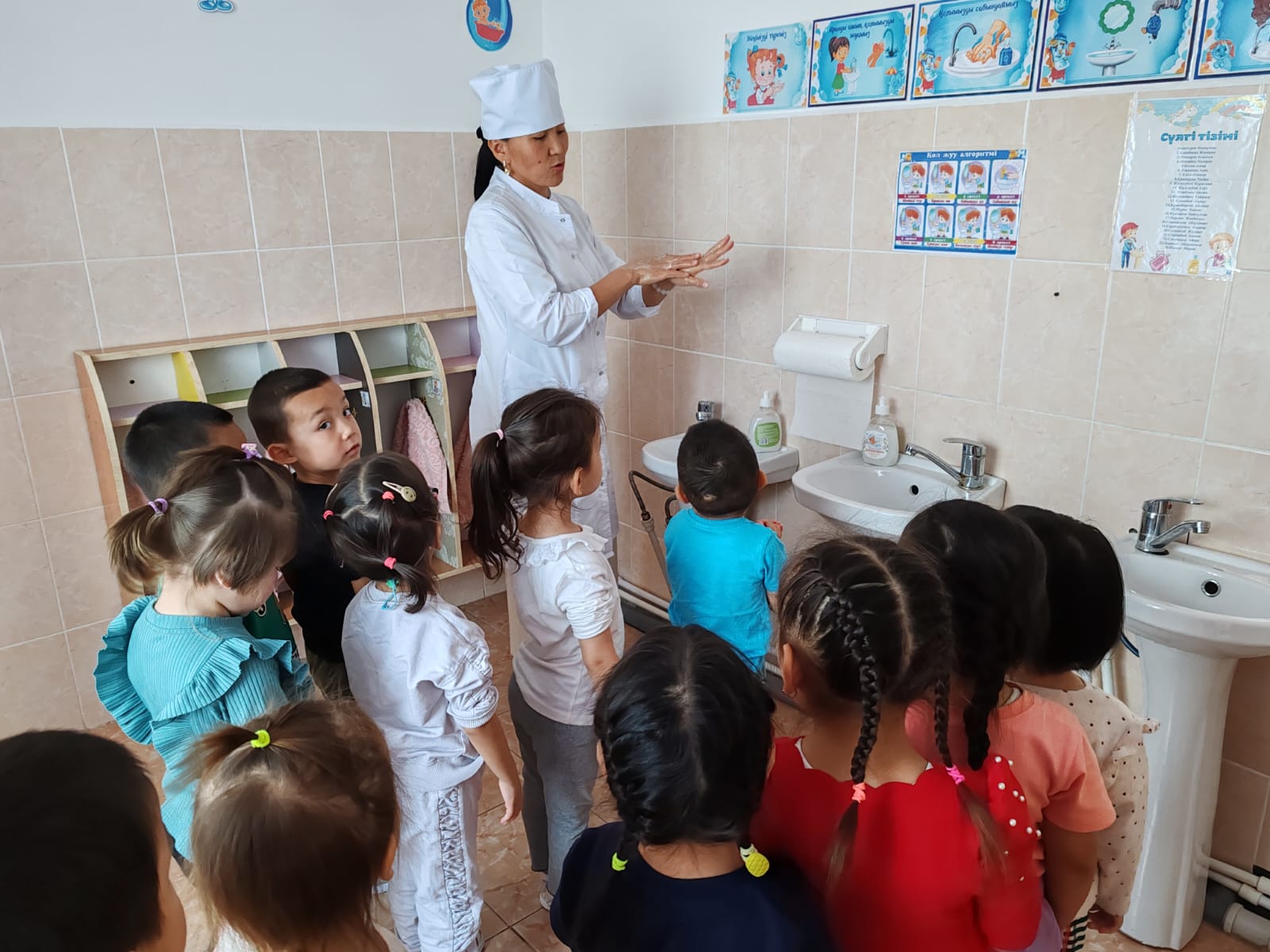 Балабақша медбикесі "Қарлығаш" тобының тәрбиеленушілерімен жеке бас гигиенасын сақтау жолдарын үйретіп, тазалыққа тәрбиелеу жұмыстарын жүргізді.