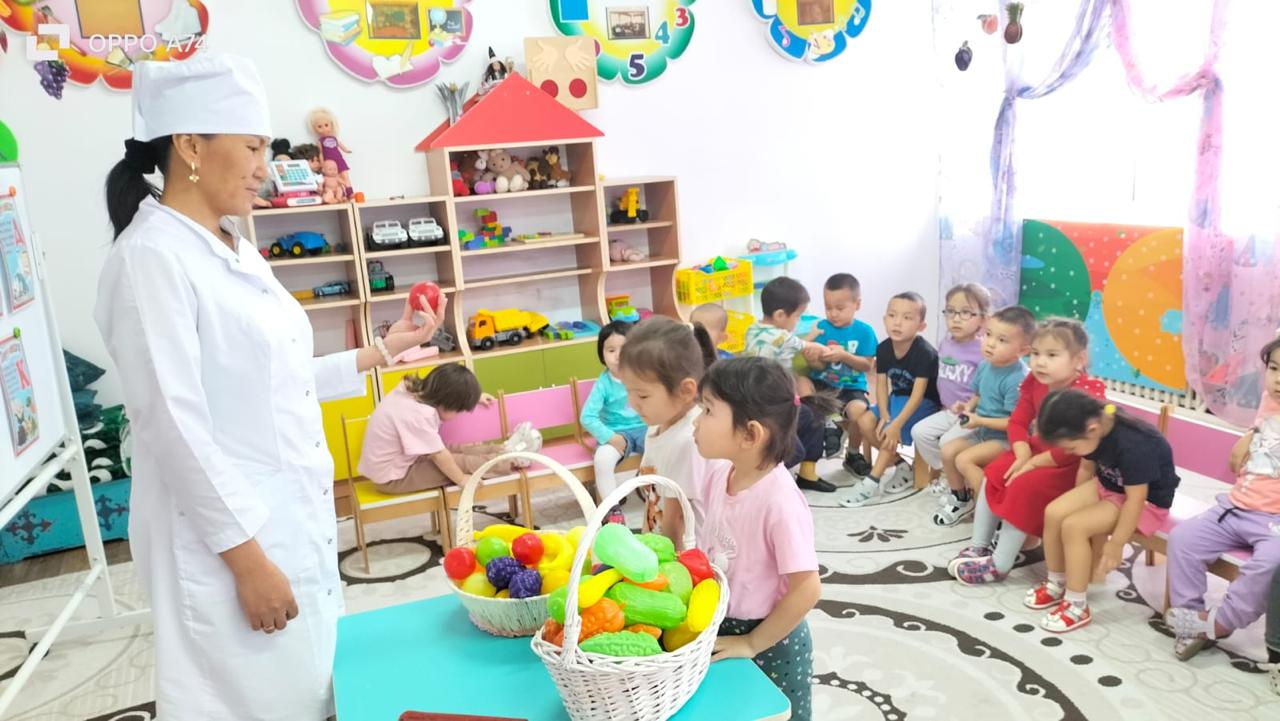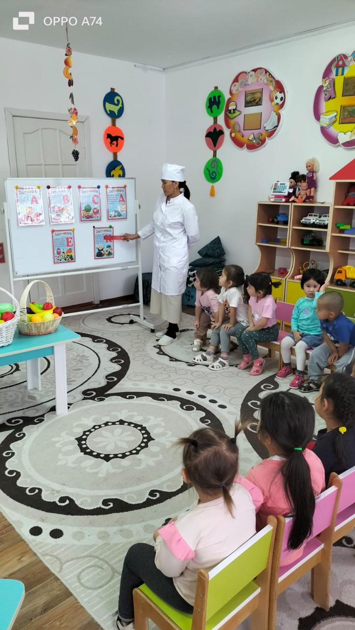 Балабақша медбикесі "Қарлығаш" тобының тәрбиеленушілерімен дұрыс тамақтануды насихаттау барысында "Дәрумендермен дос боламыз!" тақырыбында іс-шара ұйымдастырды.